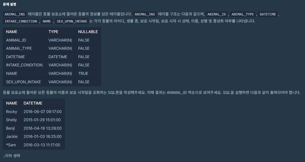 | [ 코딩 테스트 ] 동물의 아이디와 이름 (0) | 2024.04.26 |