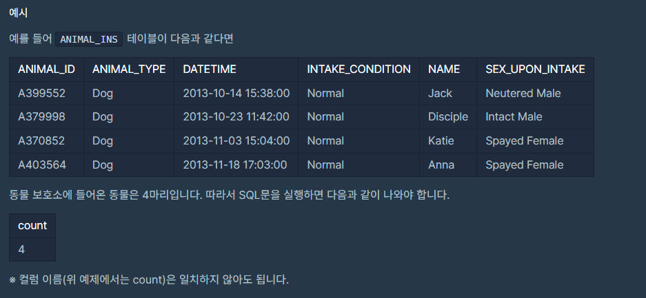 | [ 코딩 테스트 ] 동명 동물 수 찾기 (0) | 2024.04.26 |