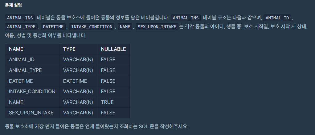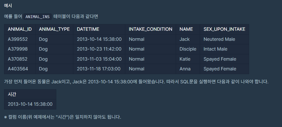 SELECT MIN(DATETIME) FROM ANIMAL_INS;