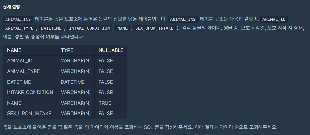 | [ 코딩 테스트 ] 아픈 동물 찾기 (0) | 2024.04.29 |