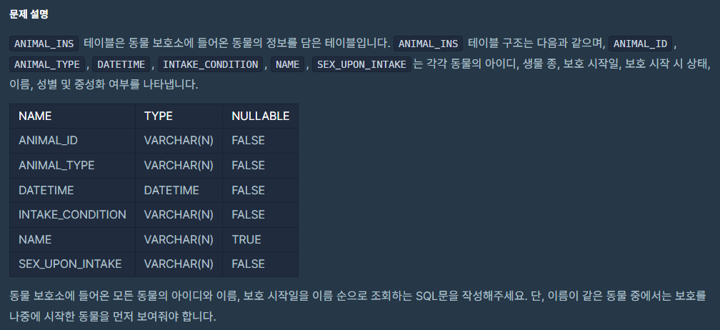SELECT ANIMAL_ID, NAME, DATETIME FROM ANIMAL_INS